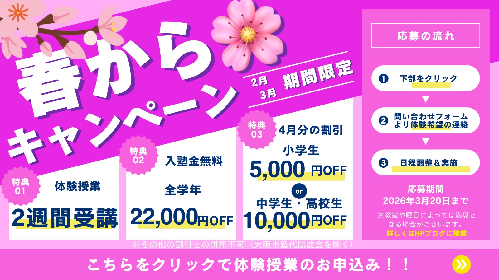 桜塾2.3月無料体験授業スケジュール